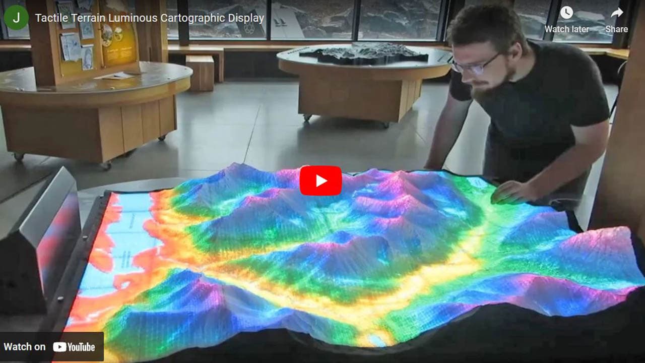 These visualization tools provide unlimited information in a single object. The 3D map surface is animated to show changes over time; daily sunlight and shadows, seasonal transitions, and the movement of water, weather, and people through the environment. These maps display static satellite images, elevation details, habitat, geological regions, or any other type of data visualization.